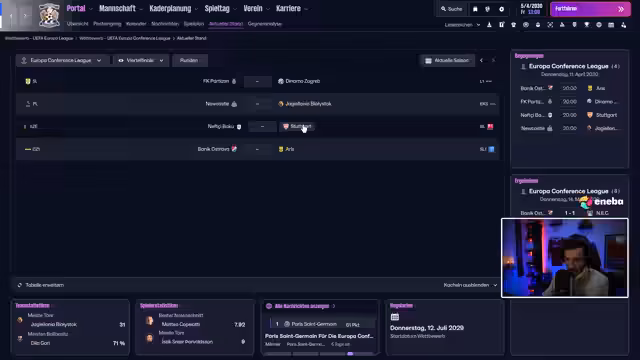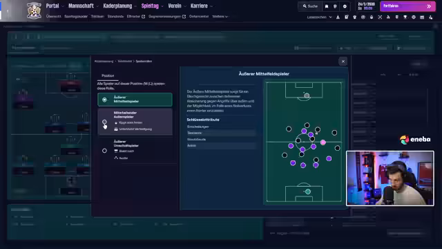 01:20:45Die aktuelle Ligasaison neigt sich dem Ende. Es sind nur noch wenige Spiele zu absolvieren, die in eine Top-Sechs- und eine Flop-Sechs-Gruppe aufgeteilt werden. Der Verein ist finanziell angespannt und muss einen Großteil des Budgets als Gehalt ausgeben. Das primäre Ziel für die aktuelle Saison ist der Klassenerhalt, was mit einem deutlichen Vorsprung auf den Abstiegsplätzen als realistisch angesehen wird.