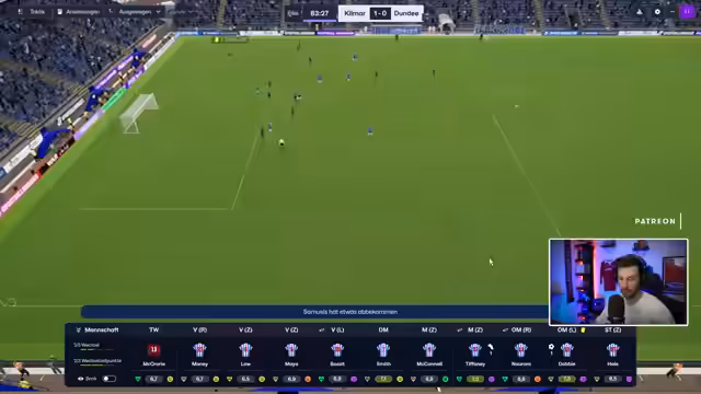 02:56:53Eine Chance wird zum Tor, was den Streamer jubeln lässt. Als Dankeschön an die Community verschenkt der Moderator Top Rider fünf Subs. Ein taktischer Wechsel folgt, bei dem Tiffany für Dobby eingewechselt wird. Es wird eine offensive Viererkette aufgebaut und im Spielaufbau experimentiert. Das Konzept der offensiven Ausrichtung bleibt jedoch trotz der schwierigen Lage gegen Celtic bestehen.