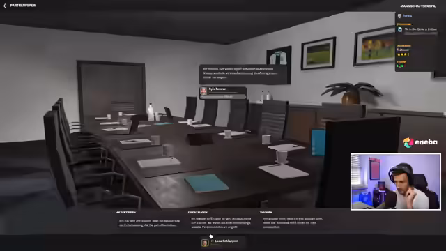 00:27:14Die Transferliste wird intensiviert: Gesucht wird ein schneller rechter Flügelspieler. Kandidaten wie Ugo Novoa, Wolfgang Osei Occiere und Ruben Vargas werden geprüft. Der Fokus liegt jedoch auf Wilson Odobert (Tottenham), trotz seines bevorstehenden Wechsels zu Lazio. Der Streamer erkundigt sich nach den Ablösebedingungen (ca. 17,75 Mio. Euro) und erwägt ein Angebot. Gleichzeitig werden Leihoptionen wie Joao Ferreira (Wolves) bewertet, wobei finanzielle Grenzen klar benannt werden: 'Wir haben kein Geld'.