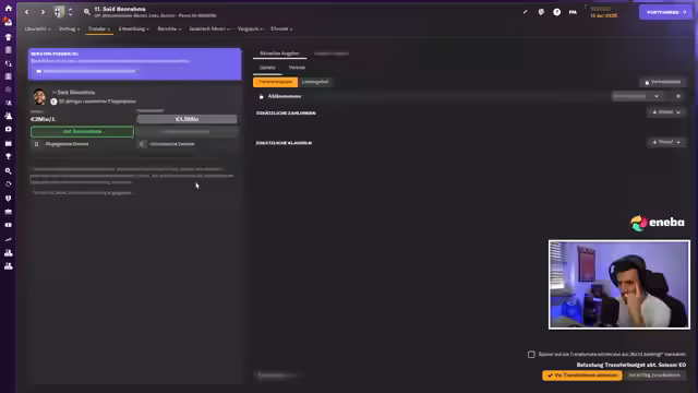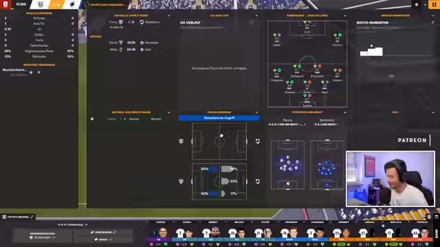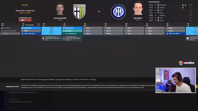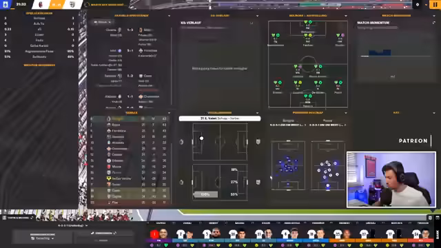 00:17:24Mit dem neuen PC im Fokus bereitet sich der Streamer auf FM26 vor, dessen Beta-Release für nächste Woche oder später spekuliert wird (offizieller Start: 4. November). Parallel erklärt er die kritische Lage bei Parma Calcio: Ein Ultimatum des Vorstands läuft noch 24 Tage, um die Teamzufriedenheit zu verbessern. Nach einem späten 2:2 gegen Cesena wird das 4-2-3-1-Gegenpressing-System optimiert. Aggressive Leistungseinheiten sollen die Form stabilisieren, während der Trainer druckvoll feststellt, dass das Team mit 17 Punkten 11 Zähler unter dem xG-Wert liegt.
