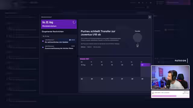 03:17:26Es wird weiterhin über die Vereinswahl spekuliert, während die Zuschauer auf das angekündigte Update warten, das zwischen 20 und 21 Uhr erscheinen soll. Die Wette ist inzwischen geschlossen und hat eine Million und 50.000 'Schlappis' im Pott gesammelt. Die Auflösung der Wette ist für den Zeitpunkt geplant, an dem das Update verfügbar ist und der neue Save gestartet werden kann. Es wird über die Tipps der Vereinswahl gesprochen: kein Verein aus Deutschland oder Italien, die Farbe Rot in den Vereinsfarben, im Trikot oder im Logo und ein 'O' im Vereinsnamen. Auch das DFB-Pokalfinale wird thematisiert, das die Bayern mit 1:0 gegen Kiel gewinnen. Der Streamer simuliert die Zeit bis zum Update weiter voran und beobachtet weitere Transfers und Entwicklungen im Spiel. Es wird auch ein kurzer Blick auf die zweite und dritte Liga geworfen, wo Auf- und Abstiege sowie Relegationsspiele stattgefunden haben. Die Wartezeit auf den Patch wird genutzt, um die Spannung auf den neuen Save aufrechtzuerhalten.