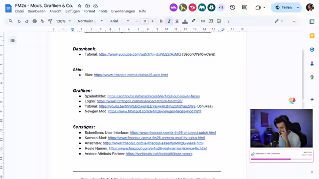 00:21:04Der inhaltliche Plan für den Stream wird vorgestellt: Die aktuelle Gladbach-Beta-Karriere soll mit den letzten fünf Spielen beendet werden. Danach ist geplant, mit dem neuen Patch, der für den Abend erwartet wird (geschätzt zwischen 17 und 18 Uhr), in einen neuen „Main-Save“ zu starten. Der Verein für diesen Save wird noch nicht verraten, aber es gibt Hinweise auf ein YouTube-Video mit zehn potenziellen Vorschlägen. Ein neues Deutschland-Trikot wird kurz thematisiert, das ab dem 6. November bestellbar ist und als „schnieke“ empfunden wird. Ein Highlight ist die Vorstellung neuer Mods: Über den Befehl „!mods“ im Chat erhalten Zuschauer Zugang zu einem Google-Doc, das alle genutzten Mods auflistet, darunter Datenbank, Skin, Spielerbilder, Logos, New-Gen-Mod, schnelleres User-Interface und eine beeindruckende Kamera-Mod. Diese Kamera-Mod ermöglicht es, das Spiel aus verschiedenen Perspektiven zu verfolgen, sogar aus der Fan-Perspektive im Stadion, was als „völlig bekloppt“ und „insane“ beschrieben wird, obwohl es anfänglich technische Schwierigkeiten gibt.