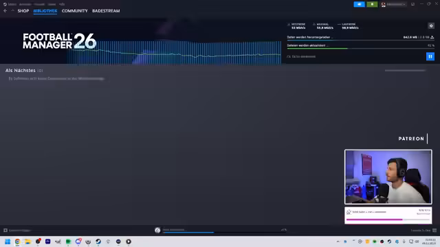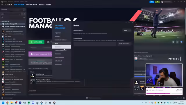 05:15:29Zu Beginn des Streams wird das neue Update für Football Manager 26 besprochen. Es wird eine Beta-Version erwähnt, die nicht für alle verfügbar ist und über eine separate Option in Steam aktiviert werden muss. Der Streamer stellt die Patch Notes vor und betont, dass es sich um ein umfangreiches Update mit über 300 Bugfixes handelt. Ein wichtiger Hinweis ist, dass Public Beta aktiviert bleiben muss, da das Deaktivieren des Beta-Branches auf eine ältere Version zurückpatcht und den Download eines weiteren Patches auslöst.