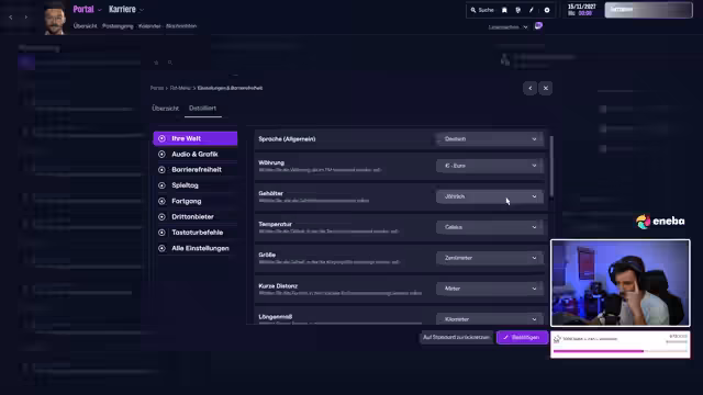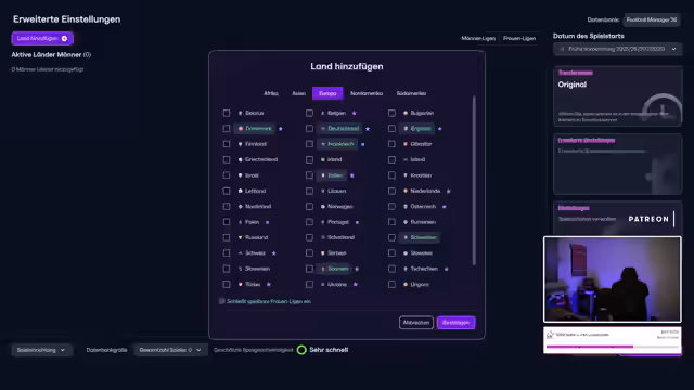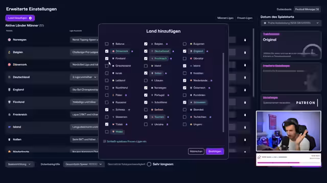 05:48:13Der Streamer thematisiert die antizyklische Spielzeit in Norwegen, die eine frühe Vorbereitung im Februar 2025 vorsieht, im Gegensatz zu den normalen europäischen Ligen wie der Bundesliga. Es wird überlegt, ob ein Start im Februar 2026 sinnvoll wäre, um zu sehen, wie die Simulation der vergangenen Saisons abläuft. Ein Test zeigt, dass die Ergebnisse der deutschen Liga im Jahr 2025 nicht angezeigt werden, wenn man im Februar 2025 startet, da die Saison in Deutschland dann bereits beendet wäre. Letztendlich wird entschieden, im Februar 2025 zu starten, damit Deutschland mit der neuen Saison beginnt und die Ergebnisse der letzten Saison bereits feststehen. Die erweiterten Einstellungen beinhalten die Nutzung fiktiver Spieler und Mitarbeiter sowie die Aktivierung des Ingame-Editors, um Sockendal als Partnerverein zu etablieren, da dieser Verein in einem früheren Save eine besondere Rolle spielte.