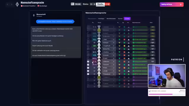 00:29:38Die verbleibenden fünf Spiele der Gladbach-Beta-Karriere stehen an: gegen Dortmund, Bayern, Frankfurt, Mainz und Wolfsburg. Das Ziel ist es, die Saison entspannt zu beenden. In der ersten Saison wurde der DFB-Pokal gewonnen, und in der zweiten Saison steht das Team auf Rang 5 mit 51 Punkten aus 29 Spielen, mit Chancen auf einen Champions-League-Platz. Die Spielerbilder wurden aktualisiert, um Beschwerden zu vermeiden. Der Streamer freut sich darauf, den neuen Save später anzukündigen, der bereits vollständig vorbereitet ist und eine „sehr, sehr geile Geschichte“ verspricht. Es wird über die Bayern-Spiele und die Champions League diskutiert, wobei der Streamer humorvoll die eigene Mannschaft auf Augenhöhe mit den Bayern sieht. Ein Zuschauer berichtet von Problemen mit der Auflösung seines 4K-Monitors im Spiel, wofür die Community um Hilfe gebeten wird. Der Streamer gibt Tipps zu Fast-Food-Bestellungen bei McDonald's und Burger King und verrät, dass der neue Save nicht in Deutschland oder Italien angesiedelt sein wird. Die Möglichkeit einer „Journey“-Karriere wurde in Betracht gezogen, aber zugunsten des aktuellen Plans verschoben, da der Jobmarkt in der Beta-Version noch fehlerhaft sein könnte. Die Gladbach-Saison neigt sich dem Ende zu, mit einem spannenden Spiel gegen die Bayern, das 3:2 gewonnen wird, was die Bilanz gegen die Bayern auf zwei Siege, ein Unentschieden und zwei Niederlagen in fünf Spielen verbessert.
