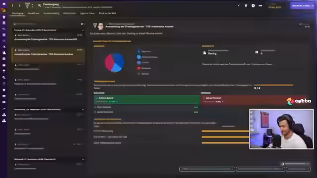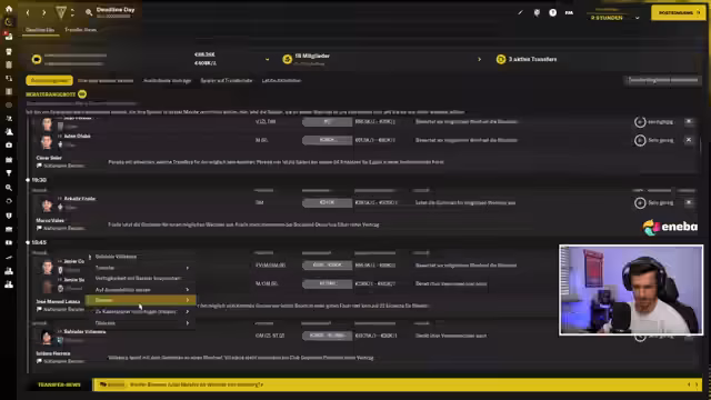 02:23:39Die Transferaktivitäten halten an, mit der Verpflichtung des kostenlosen Spielers Isaac Frimpong als Verstärkung für die Bundesliga. Gleichzeitig wird das Kader für ein Topspiel gegen Hannover vorbereitet, während der Spieler Kili nach Verletzungspause wieder ins Mittelfeld zurückgeholt wird. Der Streamer diskutiert auch die Möglichkeit, den Spielmodus zu starten und berichtet über den aktuellen Stand in der virtuellen Tabelle.