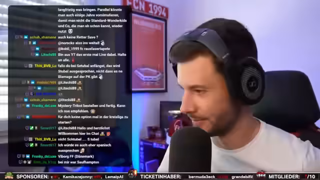 00:12:53Der Streamer diskutiert mit seinem Chat über mögliche Stream-Inhalte. Er erwähnt Versuche mit Datenbanken für aktuelle Kader und Ergebnisse im Fußball, was jedoch nicht vollständig funktioniert. Er überlegt, ein Drogendealer-Spiel namens 'Schedule 1' oder einen Fußballmanager zu spielen, uns unsicher ist er noch. Auch die Idee einer Gaming-Doku mit dem Zuschauer 'Smarty' wird angesprochen.