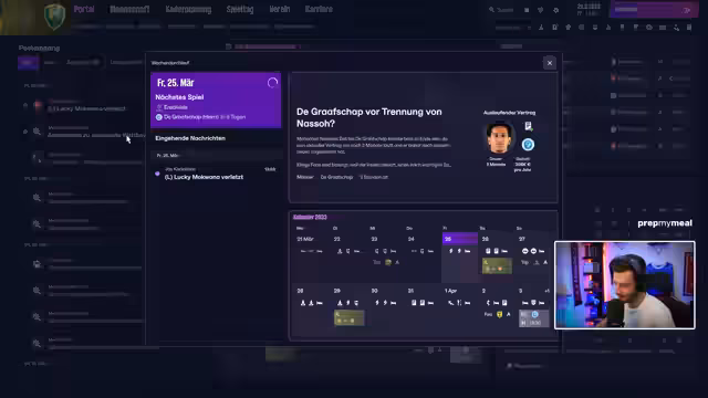 01:52:21Das Scouting wurde intensiv fortgesetzt, wobei der Streamer versuchte, Talente unter 30 Jahren zu identifizieren und Vertragslaufzeiten zu prüfen. Die Bewerbungen als Trainer bei PSV Eindhoven und Strasbourg wurden als strategische Optionen für die nächste Saison erwähnt, blieben jedoch vorerst erfolglos. Das Hauptziel bleibt der Klassenerhalt in der aktuellen Saison, gefolgt von einer möglichen Neuausrichtung des Kaders.