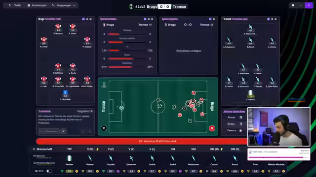 01:50:35Das Hinspiel der Conference League Zwischenrunde gegen Braga steht an, und der Streamer äußert seine Bedenken bezüglich der Registrierung neuer Spieler, da der unübliche Rhythmus des Spiels zu Problemen führen kann. Die Aufstellung wird besprochen, wobei Kornik als defensiver denkender Spieler bevorzugt wird. Das Spiel findet auswärts im Estadio Municipal de Braga statt, einem wunderschönen Stadion, jedoch bei Nieselregen und 13 Grad. Braga wird als brutale Truppe beschrieben, gegen die man bereits in der Liga-Phase 2:2 gespielt hat. Der Streamer weist darauf hin, dass die eigene Mannschaft nicht in Topform ist, da sie nur Vorbereitungsspiele hatte, während Braga mitten in der Saison steckt. Trotzdem hofft er auf ein gutes Ergebnis. Während des Spiels kommt es zu einer unglücklichen Situation: Ein Spieler erhält eine Gelb-Rote Karte, und ein anderer verletzt sich, was die Mannschaft auf zehn Mann reduziert. Trotz guter Chancen und Ballbesitz für Braga, aber besseren Möglichkeiten für das Team des Streamers, fällt kurz vor Schluss ein Eigentor, was zu einer 0:1-Niederlage führt. Die Enttäuschung ist groß, aber der Streamer bleibt optimistisch für das Rückspiel.