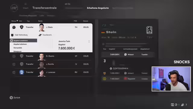 00:31:14Es wird die Winterpause erreicht und über mögliche Transfers gesprochen. Jens Schneider steht auf der Transferliste und es gibt Angebote von Newcastle. Es wird überlegt, ob man ihn verkaufen soll, um Geld für einen neuen Innenverteidiger zu generieren. Es wird über Angebote für Jens Schneider verhandelt, wobei Angebote zwischen 16 und 24 Millionen Euro eingehen. Letztendlich wird ein Angebot von 17,6 Millionen Euro angenommen. Zwei Jugendspieler werden in den Profikader befördert, um ein Ziel zu erreichen. Es wird überlegt, junge Spieler zu verleihen und ältere zu verkaufen, um keine Finanzspritze zu erhalten. Angebote für Doig werden abgelehnt, da er ein Stammspieler ist. Mehrere Spieler werden auf die Block- oder Leihliste gesetzt, um den Kader zu optimieren und Angebote zu erhalten. Es wird überlegt, Dolecal zu verkaufen, um zusätzliche Mittel zu generieren.