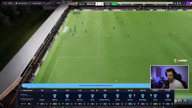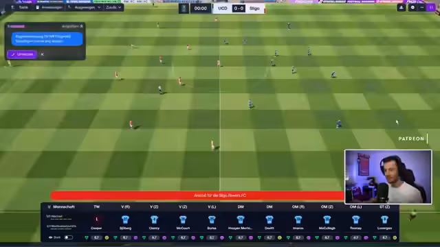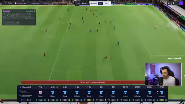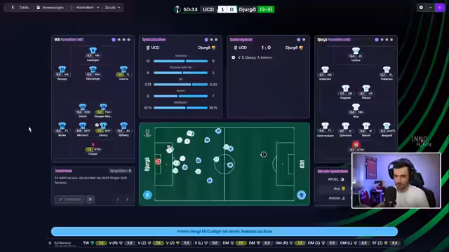 02:48:37Beim Spiel gegen Joe Gardens herrscht Verwirrung über die aktuellen Aufstellungen. Der Ziel ist es, das 3-1 aus dem Hinspiel aufzuholen, um die internationalen Träume am Leben zu erhalten. Das Stadion von UCD wird als wundervoll beschrieben, und nach einem frühen Tor durch Brolin führt die Heimmannschaft. Dies motiviert die eigenen Spieler, ein weiteres Tor erzielen, um ein Unentschieden herzustellen. Das Spiel ist intensiv, mit viel Ballbesitz und großen Chancen, aber auch mit dem Risiko, durch Konter überrumpelt zu werden. Der Fokus liegt darauf, die Führung durch ruhiges und strukturiertes Spiel zu halten.