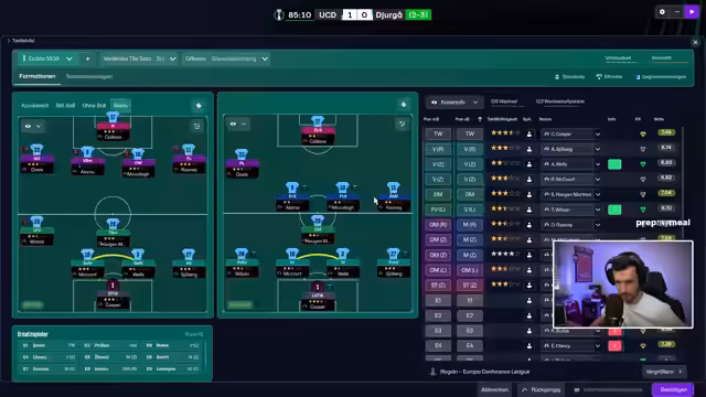 02:46:55Gegen den letzten Gegner in der Qualifikation setzt er auf einen Spieler namens Moraghan, um seine Chance auf ein Playoff-Ticket gegen Stuttgart wahren zu können. Auch wenn dieses Scheitert, ist die Europa-League-Teilnahme als Erfolg gewertet. Dennoch sieht er sich mit der Herausforderung konfrontiert, die Liga zu stabilisieren und seine Meisterschaftsambitionen nicht aus den Augen zu verlieren, während sein Karriereweg im FM weitergeht.