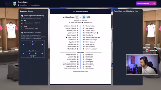 00:17:47Die Hauptthemen des Streams sind die Partien im Football Manager. Es geht um das Rückspiel in der Conference-League-Qualifikation gegen Drita, das mit 4:0 gewonnen wurde, und um anstehende Pokalspiele gegen Äthlontor. Der Streamer betont, dass er als Aufsteiger in der zweiten Liga nur um den Klassenerankampf kämpft und die Meisterschaft als unrealistisches W betrachtet. Er erwähnt den FM2-Kette-Skin, der neu hinzugefügt wurde, und zeigt kurz die visuellen Änderungen.