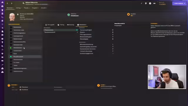 01:34:20Der Streamer widmet sich der Einstellung weiterer Trainer- und Mitarbeiterpositionen, darunter Athletiktrainer und Torwarttrainer. Nach einigen Diskussionen werden Markus Hödel als Torwarttrainer und Edgar David als Athletiktrainer verpflichtet. Parallel dazu wird über die Aufstellung der Mannschaft für ein Testspiel gegen Emmen diskutiert, wobei der Fokus auf der Auswahl der geeigneten Spielerformation liegt. Die Herausforderungen des Managements in der 3. Liga werden deutlich, insbesondere durch finanzielle Einschränkungen und die Notwendigkeit, das Team sofort konkurrenzfähig zu machen.