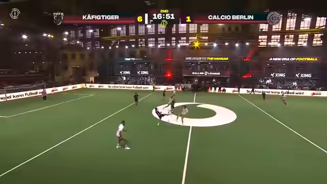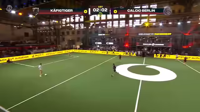 03:40:30Schon zu Beginn des Spiels machen die Käfig-Tiger das Spiel und gehen schnell in Führung, was ihre Dominanz und taktische Überlegenheit gegenüber Calcio Berlin zeigt. Besonders Steven Kodra brilliert mit exzellentem Timing, präzisen Abschlüssen und Flanken von Marco Cirillo und sorgt so für eine frühe und hohe Führung. Die Abwehr der Käfig-Tiger agiert sehr kompakt und lässt kaum Torchancen zu, während Calcio Berlin Schwierigkeiten hat, gefährlich in den Strafraum der Käfig-Tiger zu kommen. Das hohe Ergebnis zur Halbzeit spiegelt die klare Überlegenheit der Käfig-Tiger wider und stellt Calcio Berlin vor eine fast unlösbare Aufgabe.