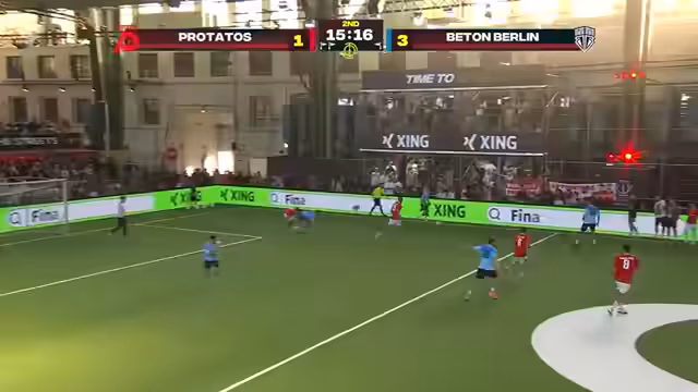 01:46:50Im Vodafone Game Changer Modus, der als 1-1 mit festen Torhütern startet, werden nach jedem Tor zusätzliche Spieler ins Spiel gebracht, wodurch sich das Spiel zu einem 2-2 entwickelt. Yassin Gnondi Jr. ragt dabei als Führungsspieler der Protatos heraus und dribbelt auch den Abwehrchef von Beton, Marco Raimondo, aus. Trotz des starken Spiels der Protatos und ihres zweiten Torschützes, Feth Mestiri, gelingt es ihnen nicht, das Spiel zu drehen, und sie verlieren 6-9, was das Aus für sie im Kampf um das Final Four bedeutet. Beton Berlin muss nun auf andere Ergebnisse warten.