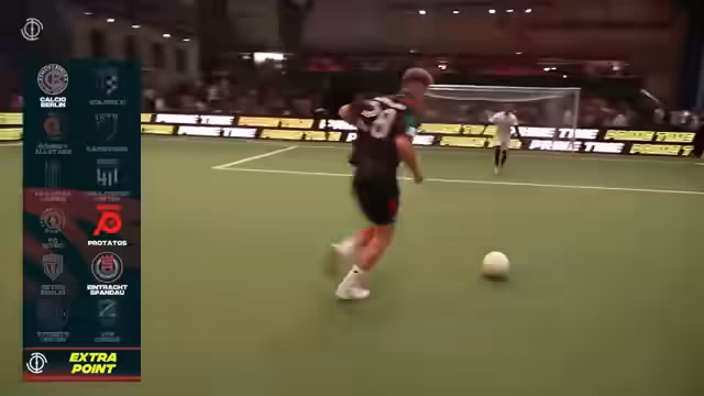 03:32:04Kevin Weggen von Calcio Berlin holt nach einigen vergeblichen Chancen den entscheidenden Extrapunkt. Damit erhöht sich die Punktzahl von Calcio auf 14 und stärkt ihre Position in der Tabelle. Gleichzeitig bestätigt sich Jonas Hofmanns Tipp. Die Tabelle zeigt Streets United weiterhin an der Spitze. Hollywood und Spandaue folgen mit 14 Punkten, während Beton Berlin mit 13 Punkten und die Protatos mit 8 Punkten um die verbleibenden Plätze kämpfen.