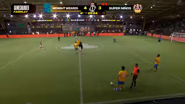 04:00:23Das Spiel erreicht den Game Changer-Modus, bei dem Fair Play eine entscheidende Rolle spielt. Ninos muss in Unterzahl weitermachen, nachdem Bastidas des Feldes verwiesen wurde. Die Midnight Wizards nutzen ihre Überlegenheit und dominieren das Spiel. Sie erzielen ein weiteres Tor durch Kachabue und führen nun mit 5-2. Die Ninos-Trainer muss taktisch umstellen, um weitere Gegentore zu vermeiden.