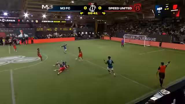 01:31:48Die zweite Halbzeit beginnt mit Speed United in Angriffsstellung. Kodra ist in Tätungsprobleme verwickelt, aber Mendes kann verteidigen. M3 erhöht den Druck, aber Speeds Keeper Hogan zeigt eine starke Performance. Nach einem Angriff von Hogan ändert sich das Spiel und Speed United führt jetzt 3-2.