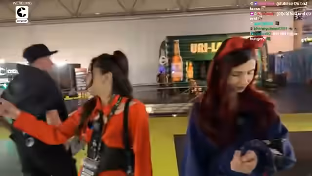 00:02:53Die beiden besuchen verschiedene Stände auf der Messe. Besonders beeindruckt sind sie vom Ghibli-Merchandise-Stand, wo Baso ihre Liebe zu Studio Ghibli teilt. Sie unterhalten sich über Lieblingsfiguren wie Totoro und Kiki aus dem Film Kiki – kleine Hexe. Auch der Stand mit den Pokémon-Artikeln wird besucht, wo über persönliche Pokémon-Bezüge gesprochen wird. Baso zeigt sich erleichtert, dass es auf der Messe viele andere Streamer gibt, sodass sie sich weniger beobachtet fühlen.