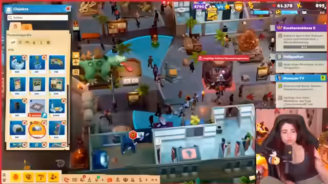 04:10:03Zunächst wird der Bau des Museums fortgesetzt, wobei der Streamer über das Problem spricht, dass das Gebäude nicht einfach erweitert werden kann, wenn bereits Ausstellungsstücke an den Wänden angebracht sind. Stattdessen muss man die bestehenden Strukturen editieren. Des Weiteren wird die Notwendigkeit neuer Experten, insbesondere für Botanik, erörtert, da deren Führungsqualitäten für das Museum wichtig sind. Die Einstellung wird jedoch durch angespannte finanzielle Verhältnisse erschwert. Gleichzeitig steigt die Frustration über wiederkehrende Probleme wie verstopfte Toiletten, die den Workflow unterbrechen.