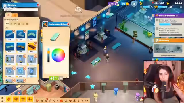 05:10:04Beim Aufbau des Aquarienmuseums stellt der Streamer fest, dass die bisherige Anordnung zu viel Platz verschwendet. Ein umfassender Umbau wird eingeleitet, um die Räumlichkeiten effizienter zu gestalten. Gleichzeitig wird Wert auf eine passende thematische Atmos gelegt, indem Ziegelsteinwände durch eine 'marmorblaue' Tapete ersetzt werden, um ein realistischeres Unterwasser-Erlebnis zu schaffen. Die Optimierung zielt darauf ab, mehr Exponate unterzubringen und die_visitor-Aufenthaltsqualität zu verbessern.