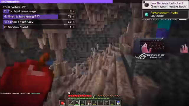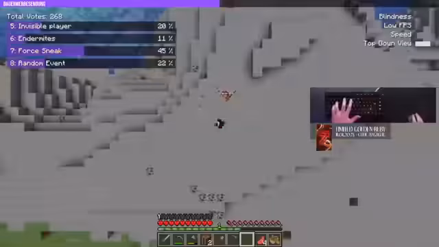 00:18:40Basti und Kevin starten die Minecraft Chaos Mod Challenge auf Bastis Hamachi-Server. Der Chat beginnt sofort mit dem Voten, wobei Optionen wie Creeper, nichts, Random Event oder Bruce Frost Walker zur Auswahl stehen. Es wird schnell klar, dass beide Spieler dieselben Effekte erhalten, da die Votes synchron sind. Zu Beginn haben sie mit Farbverzerrungen und dem Effekt "W-Key is stuck" zu kämpfen, was die Navigation erschwert. Später kommt "Pumpkin View" hinzu, was die Sicht stark einschränkt. Ein weiteres Problem entsteht durch eine Schlange, die Kevins Sicht verdeckt, und ein EXP-Regen führt zu einem Server-Reset, da es sich um einen Fehler handelt. Nach dem Neustart einigen sie sich darauf, näher beieinander zu bleiben, um die Herausforderungen besser zu bewältigen. Es folgen weitere Schwierigkeiten wie Low FPS, Timelapse, TikTok-Tänze und Entity-Magnet. Die Spieler versuchen, sich den chaotischen Bedingungen anzupassen und gemeinsam zu überleben.