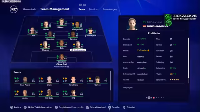 04:17:34Der Streamer kündigt an, dass er in FIFA seine Karriere weiterspielen wird. Aktuell befindet sich das Team in der nächsten Saison und ist amtierender Meister. Durch den Meistertitel konnte sich das Team für die Champions League qualifizieren, indem es sich in zwei Runden gegen Bukarest und Celtic Glasgow durchsetzte. Im ersten Champions League Spiel trifft das Team auf den belgischen Verein RAL, was als machbares Los eingeschätzt wird. Der aktuelle Kader wird vorgestellt, wobei Renzi eher auf rechts und Dumbia auf links spielen sollen, um die gewohnte Aufstellung beizubehalten. Als wichtigster Neuzugang wird Bar von ManCity genannt. Die Challenge, dass jede Nation nur einmal im Kader vertreten sein darf, wird beibehalten, was die Zusammenstellung des Teams sehr interessant macht.