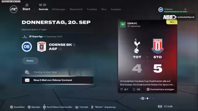 04:36:40Nach dem enttäuschenden Champions League Debüt und einer Niederlage gegen RAL steht das Team vor weiteren Herausforderungen. Ein Spieler hat Heimweh und nimmt sich eine Auszeit, was die Kaderplanung zusätzlich erschwert. Ein Angebot für Bindhammer in Höhe von 52 Millionen Euro wird abgelehnt, da der Spieler nicht verkauft werden soll, obwohl bei 90 Millionen Euro eine Überlegung in Betracht gezogen würde. Das nächste Champions League Spiel gegen Napoli wird als 'Brett' bezeichnet, aber als machbar eingeschätzt. Trotz einer guten Leistung und Drangphasen gelingt es dem Team nicht, Tore zu erzielen, und das Spiel endet erneut ohne Punkte. Die Frustration über die fehlende Effizienz und die Unfähigkeit, die individuellen Fehler abzustellen, wächst. In der Liga kämpft sich das Team langsam wieder nach oben, während die Champions League weiterhin eine große Herausforderung darstellt.