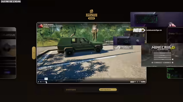 00:17:44Der Streamer gibt bekannt, dass Craft Attack nächste Woche Samstag, am 25. um 12 Uhr, startet. Ab diesem Zeitpunkt können Videos hochgeladen und Livestreams gestartet werden, um offizielle Inhalte zu präsentieren. Im weiteren Verlauf des Streams werden die Zuschauer auf die "Stream Awards Clips" aufmerksam gemacht. Bis zum 18. Oktober können noch Clips eingereicht werden, um an diesem großen Streaming-Rückblick teilzunehmen. Die Community kann für verschiedene Kategorien abstimmen, und am Ende gibt es eine Preisverleihung. Der Streamer hat in den Vorjahren oft den "Best Streamer Duo Award" mit Kevin gewonnen und hofft auf eine Wiederholung. Er schaut sich einige der bereits eingereichten Clips an, darunter Momente wie den "besten Sport-Moment" (erster Sieg in der Kings League), "Perfect Timing" und "bester Fail-Moment" sowie "most surreal moment" und "bester Troll-Moment". Er ermutigt die Zuschauer, weitere Clips, insbesondere für die Kategorie "Bestes Roleplay", einzusenden, da es viele unvergessliche Momente gab.