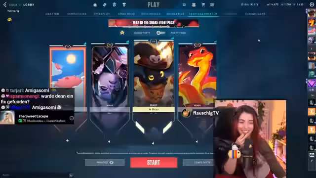 02:12:12Nachdem das Team Deathmatch gestartet ist, äußert sich die Streamerin humorvoll über ihre eigene Unfähigkeit im Spiel und bezeichnet sich selbst als "Kanonenfutter". Sie thematisiert, dass sie auf Entfernung nichts sehe und blind sei. Es wird die Hoffnung geäußert, nicht wieder auf Platin-Gegner zu treffen. Die Streamerin fragt nach Heilungsmöglichkeiten auf der Map und bemerkt, dass die Gegner passiv und ängstlich spielen würden. Es wird über die späte Reaktion der Gegner und die Ungeduld im Deathmatch diskutiert. Die Streamerin stirbt mehrfach und kommentiert die Aktionen der Gegner humorvoll. Sie lobt die Breach-Brust und äußert ihren Spaß am Spielen mit den Girlies. Am Ende des Deathmatches stellt das Team fest, dass sie nun warm und wach sind für das Ranked-Spiel. Es wird überlegt, Tier-Avatare zu verwenden und die Gegner wie wilde Tiere zu überrennen.