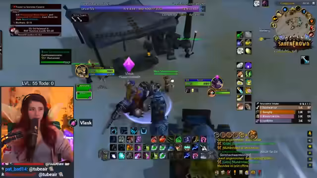 05:33:51Die Gruppe trifft sich am Eingang des Grubenkampfes, wobei der Streamer den Weg dorthin als gefährlich beschreibt. Es wird eine traurige Erzählung über einen früheren Tod eines Teammitglieds durch einen Boss, der den Tank konstant schläft, geteilt. Der Streamer betont die Wichtigkeit von Sicherheit, indem er seinen 'Ruhestein' und 'Elune'-Buff aktiviert und für den nächsten Dungeon-Karneval plant.