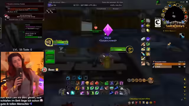 05:07:33Während der Vorbereitung für den Dungeon zeigt sich Unsicherheit beim Versuch, alleine einen gefährlichen Bereich zu durchqueren. Der Streamer ist ein wenig überfordert mit der Komplexität von WoW, merkt aber auch, dass es ihm unangenehm ist, ständig angeleitet zu werden. Nach einer Pause wegen eines anstehenden Club-Besuchs plant er erneut den Dungeon-Besuch, diesmal mit einem abgespeckten Mechaniken-Ansatz.