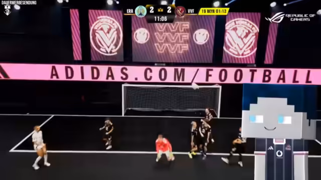 04:51:29Das Spiel beginnt mit hohem Tempo. Beide Teams kämpfen intensiv um jeden Ball. Es werden verschiedene taktische Manöver gezeigt, wie zum Beispiel das Pressing gegen den gegnerischen Torwart. Nach einem frühen Tor werden die Tiki-Takas defensiv und bauen eine Mauer auf. Das eigene Team zeigt Mühe, findet aber kaum Torchancen. Der Elfmeter wird gehalten, was das Momentum brechen könnte, aber der Kampfgeist bleibt erhalten.