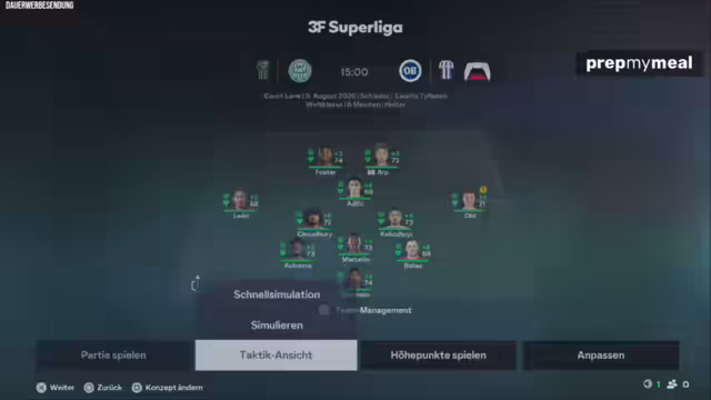 03:18:33Der Ligabetrieb beginnt, und es ist entscheidend, Leistung zu zeigen. Es wird überlegt, Leon auf der rechten Mittelfeldseite einzusetzen. Das Team spielt im 3-5-2 System, wobei die ZMs als ZDMs agieren, was zu besseren Bewertungen führt. Im ersten Spieltag gegen Randers entscheidet der Fan, dass das übrige Transferbudget nicht in die nächste Saison übernommen wird. Foster wird als Schlüsselspieler hervorgehoben und soll sein volles Potenzial entfalten. Hamza integriert sich gut ins Team und lässt sich teilweise in die IV fallen. In der Halbzeit wird auf ein 3-5-2 umgestellt. Leon wird fest verpflichtet, nachdem er eine super Laie gespielt hat und seinen Marktwert gesteigert hat. Es wird eine minimale Anpassung vorgenommen, bei der Richie startet. Das Team ist bis jetzt noch ohne Niederlage, aber auch ohne Sieg. Ein Tor wurde in zwei Spielen erzielt. Die Positionen werden getauscht, um Fiete als Rechtsfuß auf der linken Seite besser zur Geltung zu bringen.
