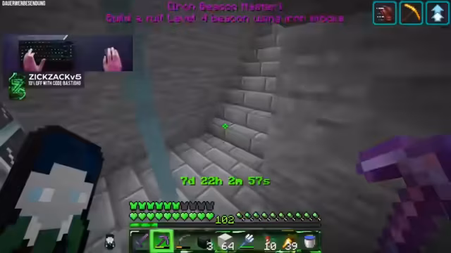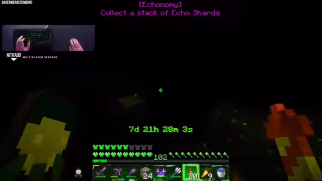 00:47:20Der Stream erlebt einen Glücksfall: In der gefundenen Ancient City finden sich ungewöhnlich viele Echo Charts, sogar bis zu acht in einer einzelnen Truhe. Innerhalb kurzer Zeit schafft es der Streamer, den benötigten Stack von 64 Items zu vervollständigen. Dieser Erfolg beschleunigt das Projekt erheblich und führt zum nächsten Achievement: den Bau eines Full Beacons aus Eisenblöcken.