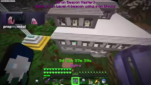 01:45:28Das Bauen eines Vierer-Beacons wird als merkwürdiges Achievement bezeichnet, da es möglich wäre, einen Triple Beacon zu erweitern. Es wird festgestellt, dass dies das 100. Achievement ist und das Projekt noch lange nicht vorbei ist. Der aktuelle Level beträgt 102, und es wird überlegt, die Level-Farm zu nutzen, die jedoch nicht AFK-fähig ist. Alternativ wird die Drown-Farm in Betracht gezogen, um schnellere EP zu erhalten, aber ihre Effektivität muss noch getestet werden. Ein Zuschauer fragt nach der Randomisierung der Achievements, woraufhin der Streamer erklärt, dass diese zufällig sind, aber aufeinander aufbauende Achievements in der richtigen Reihenfolge kommen müssen. Es wird die Idee eines gemeinsamen Streams mit Stegi oder Papa Platte diskutiert, bei dem ein Spieler blind ist und der andere nicht hören kann.