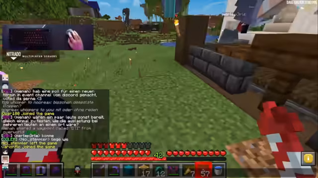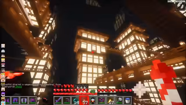 02:11:07Das Infinity Castle, ein Nachbau aus dem Anime 'Demon Slayer', wurde in drei Wochen Bauzeit fertiggestellt. Das Projekt umfasste den Bau verschiedener Farmen, darunter Holz- und Eisenfarmen, und wurde durch die Hilfe der Community und spezifischer Personen wie G-Time, Joe (für Technik) und Fuxy (für Farmen) realisiert. Es wird erwähnt, dass Tamina einen Meetingraum zur Verfügung stellte, der einmal intensiv genutzt wurde. G-Time, der das Projekt für das Team mitentworfen und fertiggestellt hat, erklärt, dass die anfängliche Größe von 500x500 Blöcken auf 200x200 Blöcke reduziert wurde, um den Fähigkeiten des Teams gerecht zu werden. Die Mathematiker im Team berechneten, dass über 700.000 Items und Millionen von Blöcken verbaut wurden. Das Team, bestehend aus verschiedenen Streamern, die sich teilweise vorher nicht kannten, zeigte eine bemerkenswerte Zusammenarbeit und Elan, was besonders hervorgehoben wird. Nach einer kurzen Einführung werden die Teilnehmer in Dreiergruppen in das Castle geschickt, um es zu erkunden, wobei Raketen und Tränke des leichten Fallens zur Verfügung gestellt werden, um die Erkundung zu erleichtern.