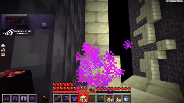 00:23:10Der Streamer präsentiert ein riesiges Loch in seiner Basis, das sogenannte Void, welches mit Unterstützung von Heiko entstanden ist. Dort soll ein Jump'n'Run über dem Void in Richtung Drachenei gebaut werden. Um diesen Raum weiter auszuschmücken, benötigt er Endstone, den er im End farmen möchte. Er fragt sich, ob noch genügend Endstone vorhanden ist, da er von einem anderen Spieler erfahren hat, dass dieser Endstone gefarmt hat. Es wird besprochen, dass es Kisten mit Endstone im End gibt, die er sich holen kann. Die Obsidian-Farm hatte in der letzten Nacht Probleme, aber es sollte genug Material für erste Bauarbeiten vorhanden sein. Trotz der aktuellen Lags im Spiel, die von mehreren Teilnehmern bestätigt werden, möchte er mit den Bauarbeiten beginnen.