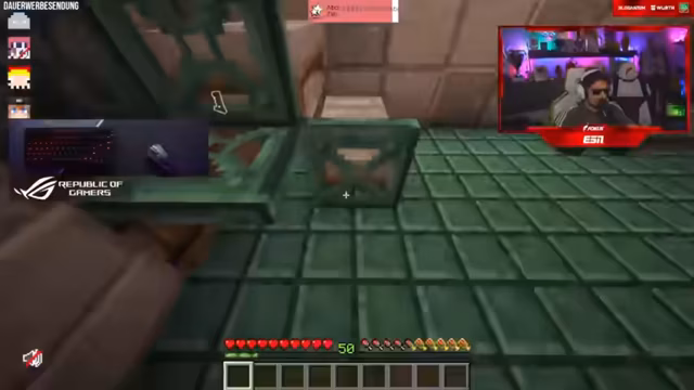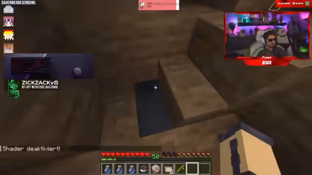 07:08:28Der Spieler ist frustriert, da er trotz intensiver Suche keine weiteren Fortschritte macht. Er überlegt, ob er seine Sonnenbrille abnehmen soll, da das Elgato-Licht stark blendet und seine Sicht beeinträchtigt. Er erhält den Tipp, gründlicher in Ecken und Kanten zu suchen und eventuell den Shader auszuschalten oder Fullbright zu aktivieren, um mehr zu sehen. Er entdeckt einen Faden, den er mit Shader und Sonnenbrille kaum sehen konnte. Trotzdem kann er immer noch nichts craften. Die Suche nach dem versteckten Crafting Table wird zu einer großen Herausforderung. Er entdeckt einen weiteren Bambus, bemerkt es aber nicht sofort. Die Zuschauer sind gespannt, wann er den zweiten Crafting Table finden wird, der extrem gut versteckt ist.