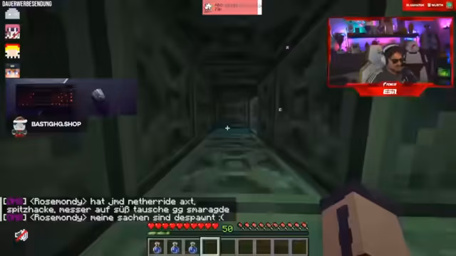 02:40:05Nachdem der Streamer sich für den neuen Skin entschieden hat, spricht er über erhaltene Plushies und freut sich über das schnelle Versandtempo. Er erwähnt auch das Sollen-Event und das Schauen von Mina-Event. Ein Spawner-Freibau wird getestet, wobei die Funktionsweise unklar bleibt. Auch das Farmen von Deepslate wird thematisiert, wobei der Streamer seine Angst vor dem Void erwähnt und sich über den Zustand des Craftex-Servers beschwert.