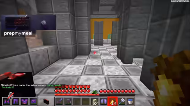 00:24:14Der Streamer arbeitet an einem großen Void-Projekt, das als eindrucksvollster Teil seiner Base beschrieben wird. Er plant, einen Jump'n'Run in Richtung Drachenei zu erstellen und benötigt dafür Endstone-Materialien. Gleichzeitig treten Internetprobleme auf, die zu Lags führen. Der Streamer vermutet, dass es an seinem PC oder Internet liegt und plant einen Speedtest. Auch technische Probleme beim Nacht-Obsidian-Farming werden angesprochen.