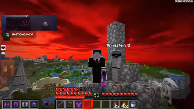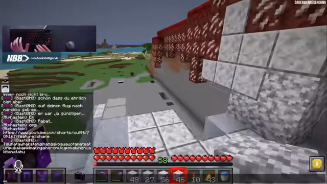 00:15:00Im Fokus des Streams steht der Bau eines Biom in Minecraft. Der Streamer arbeitet fleißig daran, einen Berg mit Blöcken einzuschmieren und das Areal zu bebauen. Er stellt zudem seine selbst entworfene Stasis-Kammer vor, die durch eine spezielle Mechanik mit einem Boot und Pfeilen funktioniert und dem Nutzer ermöglicht, sich schnell im Server zu teleportieren.