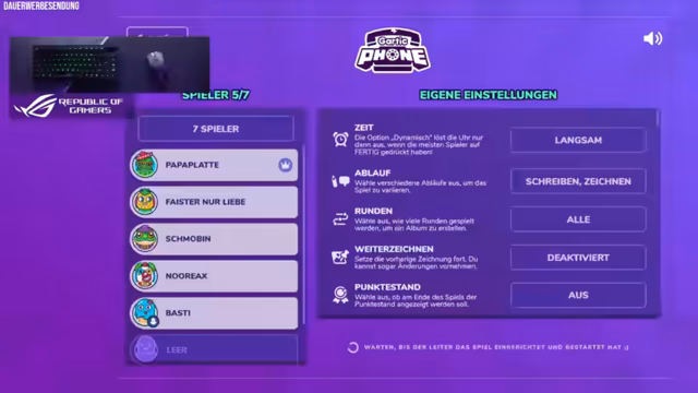 03:24:22Ein spontanes Spiel von Gartic Phone wird eingeleitet. Streamer und Teilnehmer schreiben Sätze, die anschließend gezeichnet und interpretiert werden. Ziel ist es, einen lustigen und kreativen Ablauf zu schaffen, bei dem die Ergebnisse oft unerwartet und humorvoll sind. Der Fokus liegt auf dem gemeinsamen Spaß und nicht auf der künstlerischen Qualität der Zeichnungen.