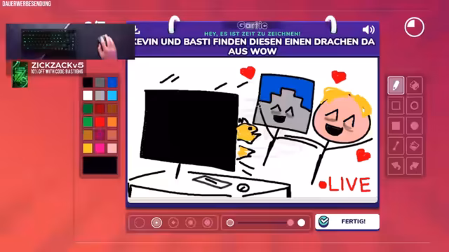 03:43:37Technische Schwierigkeiten und Zeitdruck führen zu komischen Situationen. Teilnehmer drücken ihren Frust über die Kürze der Zeichenzeit aus. Die erzeugten Zeichnungen werden live kommentiert und bewertet, was zu viel Gelächter führt. Manche Teilnehmer preisen die Ergebnisse anderer, während andere sich für ihr eigenes Werk entschuldigen.