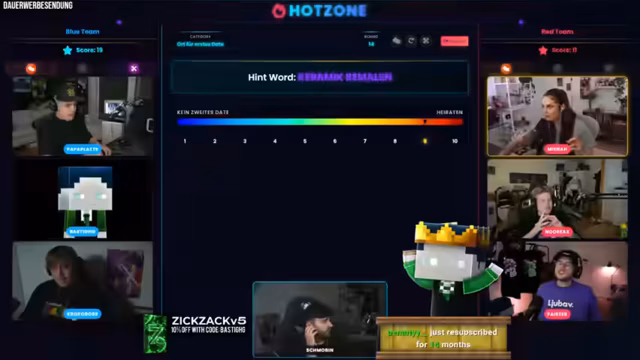 Bei einem abwechslungsreichen Quiz mussten zwei Teams ihre Fähigkeiten unter Beweis stellen. Im Fokus standen Fragen zu diversen Kategorien. So ging es um die Bewertung von Pokémon-Kombinationen und dem Schwierigkeitsgrad von Minecraft-Herausforderungen. Auch persönliche Themen wie Streitthemen in Beziehungen wurden besprochen. Gewonnen hat Team Blau.