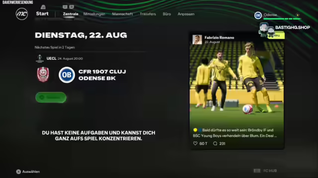 02:52:22Nach dem Ausscheiden aus internationalen Wettbewerben liegt der Fokus nun voll auf dem dänischen Fußball. Die Simulationen zeigen gemischte Ergebnisse, und die Dreierkette wird als problematisch angesehen. Trotzdem gibt es wichtige Auswärtssiege, die das Team in der Liga halten. Spieler wie Nypan und Leon entwickeln sich gut. Es wird über den Verkauf von Avonii nachgedacht, der zu Aldilal wechseln soll. Das Team festigt seine Position in der Liga mit weiteren Heimsiegen, wobei Ransi und Fiete als Torschützen hervorstechen. Die Verhandlungen über Vertragsverlängerungen und Gehaltsanpassungen, insbesondere für Ben Old, zeigen die finanziellen Herausforderungen und strategischen Überlegungen bei der Kaderplanung. Ein Angebot von Aston Villa für Ben Old in Höhe von 23,7 Millionen Euro wird abgelehnt, da der Streamer 38 Millionen Euro fordert.