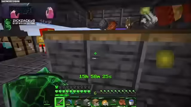00:10:44Der Streamer begrüßt Zuschauer kündigt eine weitere Minecraft-Duo-Challenge mit Stegi an. Dabei geht es darum, Stück für Stück Blöcke durch Level freizuschalten, um einer Festung und letztendlich einem Stronghold zu erreichen. Streamer und Stegi arbeiten an einer Welt, in der sie bereits ordentlich viel geschafft haben, darunter Mob-Farmen und eine Eisenfarm. Die Herausforderung soll in möglichst kurzer Zeit gemeistert werden, wobei sie über mehrere Tage verteilt ist.
