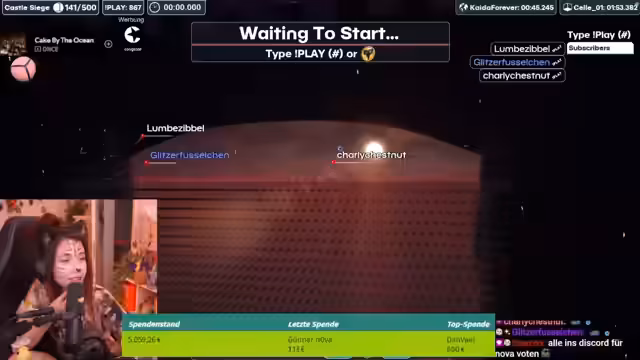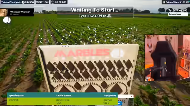 03:41:45Der Stream beginnt mit dem Spiel Murmeln. Der Streamer erläutert die Regeln: Wer als Erster ins Ziel kommt und noch kein Subscriber ist, erhält ein kostenloses Abo; Subscriber werden zu VIPs; wer als Letzter ankommt, wird eventuell permanent aus dem Chat gebannt. Die Teilnahme erfolgt durch Eingabe von Ausrufezeichen Play im Chat, es sind keine zusätzlichen Downloads erforderlich. Nach technischen Vorbereitungen, wie dem Einschalten der Klimaanlage, wird die erste Runde gestartet.