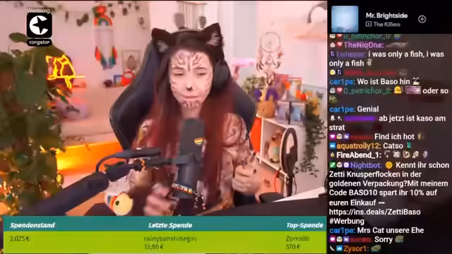 01:20:43Der Streamer nimmt sich eine Katzenrolle an, komplementiert sein Outfit mit Schnurrhaaren und bringt den Chat zum Lachen, indem er sich in eine 'mausige Katze' verwandelt. Er betont die Symmetriefreiheit der Schnurrhaare, um sich selbst zu verspotten. Während des Streams wird laufend auf die Spendenseite geblickt und jede neue Spende wird mit Dank und einer persönlichen Note versehen, was eine herzliche und wertschätzende Atmosphere schafft. Die aufgelaufene Summe von über 2.000 Euro wird mehrfach mit Erstaunen und Freude kommentiert, was die beeindruckende Großzügigkeit der Community unterstreicht.